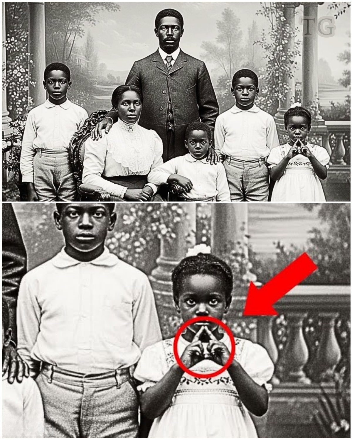 Six figures stared back at her: a father standing, hand resting protectively on his wife’s shoulder; a mother seated, posture rigid, lace collar immaculate; four children arranged with careful symmetry.